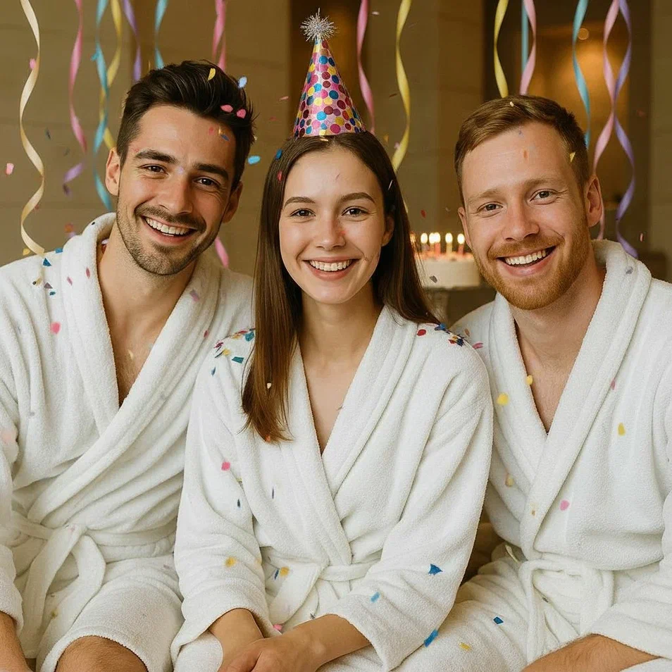 При оплате пакета на 4 гостей - именинник получает В ПОДАРОК: безлимитное посещение спа-комплекса и спа-услуги по выбранному пакету. Стоимость: Пакет "День рождения" на 5 человек от 23 700 руб. Стоимость рассчитывается индивидуально и зависит от количества человек в компании и выбранных услуг. Отдел корпоративных и групповых продаж: +7 (904) 804-78-08